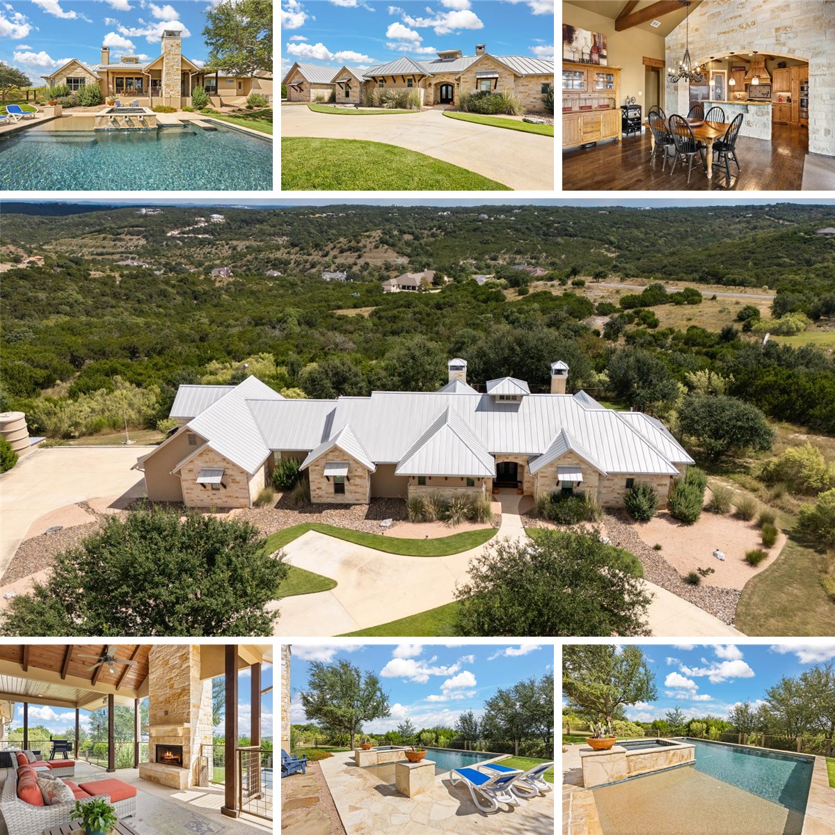 Welcome to 116 Marquise, a breathtaking oasis of luxury and tranquility nestled on 3 sprawling acres that promise an unrivaled lifestyle of comfort and style! Located in the highly desirable and gated community of Diamond Ridge, this exquisite one-story custom designed and constructed home (with a bonus room above the garage) spans approximately 4,200 square feet, featuring four bedrooms (one can be used as an office or bedroom) and three bathrooms, meticulously designed to cater to the most discerning tastes. From the moment you arrive, you'll be captivated by the stunning hill country views that set the backdrop for this amazing home. The home's exterior, an attractive combination of stucco and native limestone, was recently painted, while the standing seam Galvalume roof, gutters and downspouts add both elegance and durability to the curb appeal. The solid black metal double front door with privacy glass also sets the stage before entering! The interior is equally impressive, boasting an open floor plan that seamlessly integrates the kitchen and living room, creating an inviting atmosphere for both entertaining and everyday living. The kitchen is equipped with a built-in extra wide, double door stainless steel Whirpool refrigerator, built-in stainless steel oven, a stainless gas cooktop, a classic farmhouse sink, exquisite granite countertops, all accented by light knotty alder wood cabinetry, as well a secondary veggie sink and walk-in pantry The architecturally exposed beams in the family room highlight the vaulted ceiling design, while the massive limestone arched wall leading into the kitchen is a major statement feature. The primary bedroom is spacious and offers a spa-like experience in the bathroom with a private walk-in shower, a jetted tub, double vanity and an over-sized walk-in closet with multiple built-in features. The two main guest bedrooms are located on the opposite wing from the primary bedroom and one of them enjoys its own luxury bathroom. The residence's allure extends beyond its living spaces. Movie enthusiasts will delight in the dedicated movie theater, offering an authentic cinema experience at home with surround sound and movie theatre style chairs that are negotiable. A large bonus room above the garage serves as the perfect space for a game room or workout area. The laundry room is more than spacious and offers extensive cabinets and another sink. Now it's time to talk lifestyle! Outdoor living is elevated to new heights with a large covered back patio with a floor to ceiling stone fireplace overlooking the magnificent heated Keith Zars pool with a beach entrance and spa, creating a resort-like ambiance. The views off the back patio go for miles so if you like colorful sunrises, get your coffee ready and enjoy the show! The private fire pit, located beyond the pool, is yet another superb feature that allows for star gazing and s'mores! The side loaded three car garage offers tons of space and has an epoxy flooring (as well as hanging racks). The buried propane tank allows for gas cooking, gas logs in each of the two fireplaces and heating the pool, while the large concrete water storage tank was also recently painted seamlessly blends in with the house. There is even a hidden armory that offers a secure place to store valuables. If all of that wasn't enough, there is a private pond, full of fish, along with the pickle ball and tennis courts located with in the community owners can take full advantage of. 116 Marquise is not just a residence but a sanctuary, offering long-range hill country views and a lifestyle of unparalleled luxury and serenity. If you are looking for a gorgeous Texas Hill Country home with great views, a seamless floor plan, an oasis backyard, in a highly desirable gated community and just 8 minutes to town, you need to put 116 Marquise on your short list!